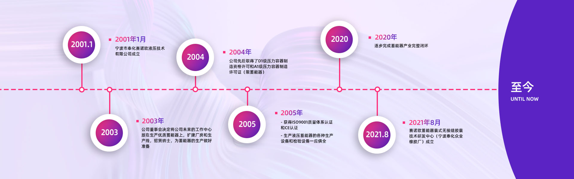 寧波市奉化賽諾歐液壓技術(shù)有限公司創(chuàng)建于2001年7月,是國內(nèi)優(yōu)秀的液壓蓄能器專業(yè)制造公司,制造設(shè)備齊全,檢測手段完善。同時也是探索蓄能器囊式結(jié)構(gòu)一體化的科研創(chuàng)新型企業(yè)。 2001年,公司董事會決定將公司未來的工作重心放在生產(chǎn)優(yōu)質(zhì)蓄能器上。公司一方面著手于廠房擴(kuò)建和生···
